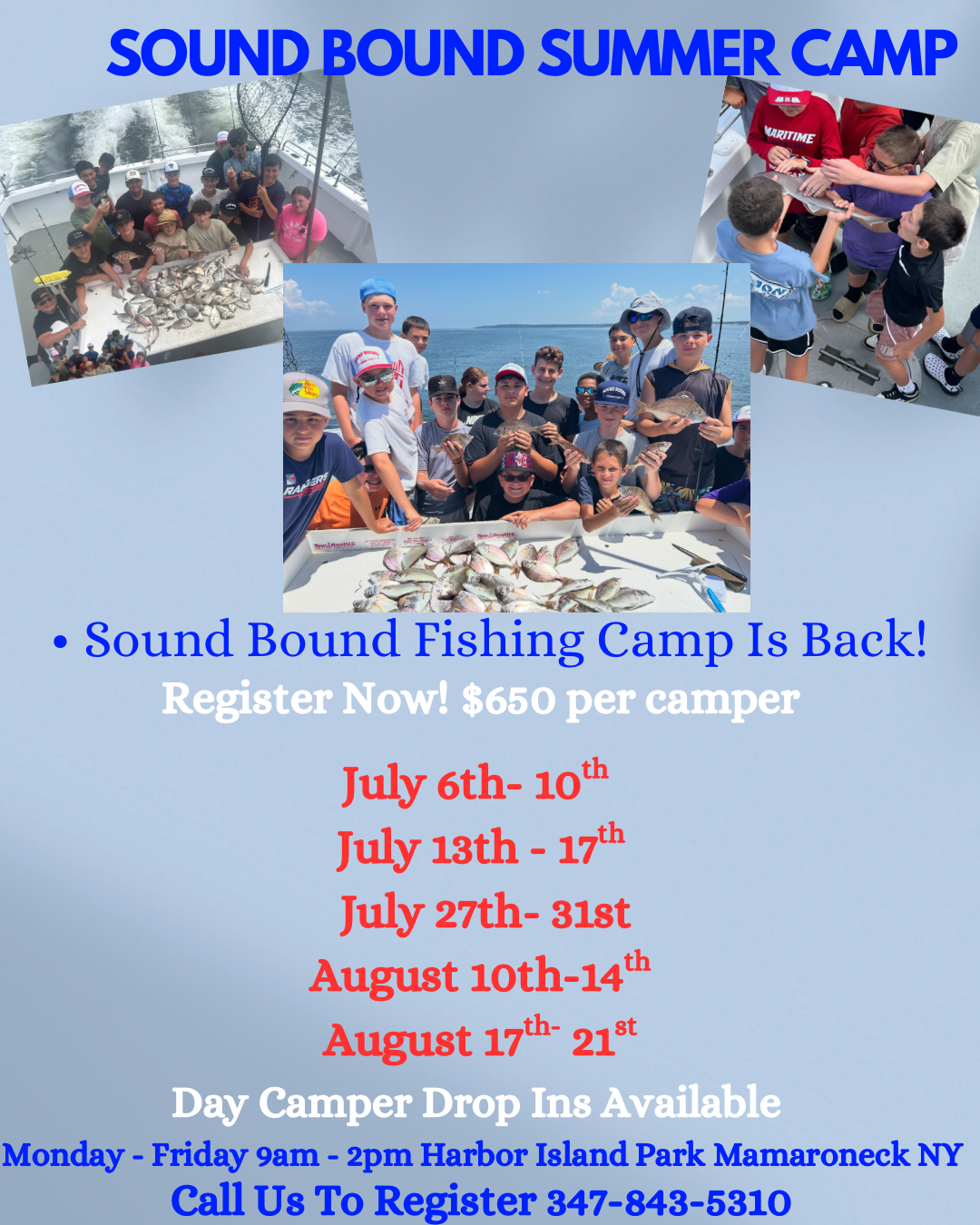 Sound Bound Fleet, the largest & busiest fleet in the Westchester & NYC area, is proud to announce we will we running our Kids Summer Fishing Adventures Camp for 2026!